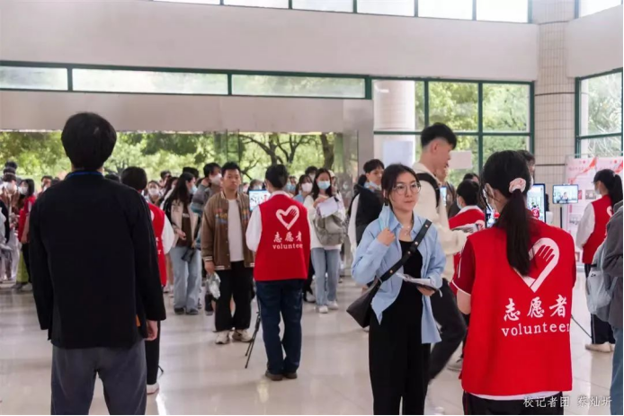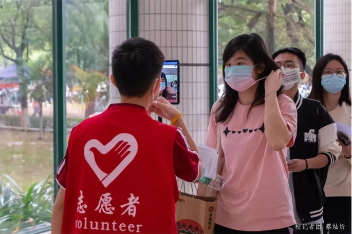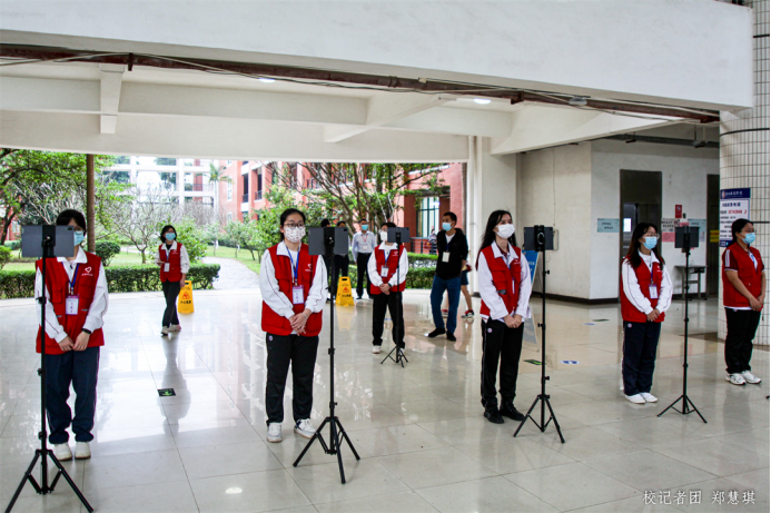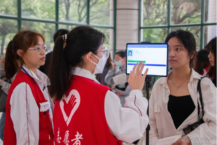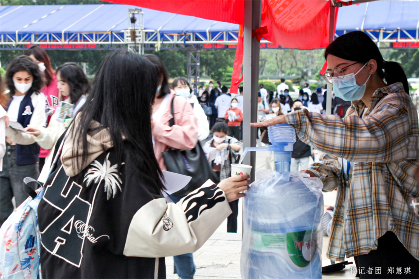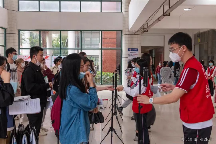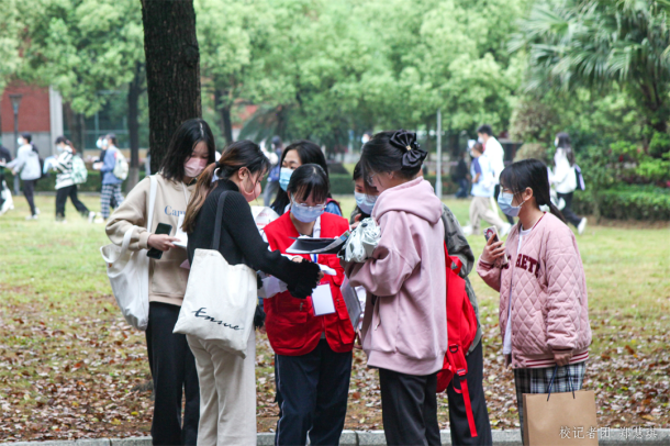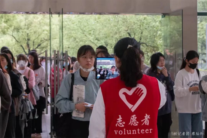 身穿红色马甲的志愿者们,也是校园内最鲜亮的色彩。在考场周围,志愿者团队设立了服务站,给考生和考生家长提供各类咨询求助服务,给广大考生营造一个温暖的考试氛围。