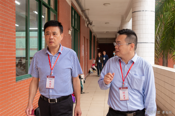 学校党政领导班子高度重视专升本考试工作,亲临现场,严格落实巡视工作。执行校长郭银华,党委书记苏宁,纪委书记、副校长王锦秀,副校长王力东多次深入考场一线,实时观看考场环境,监督考务工作的进行,再次强调全体考务及监考人员要坚守岗位,认真负责,严守招生纪律,严肃考风考纪,确保考试组织工作规范有序妥善推进。郭校长指出,各相关单位要进一步提高站位,牢固树立考生安全与健康至上的理念,将考务组织、考场纪律、人员和物资保障等各方面的工作要求落到实处。