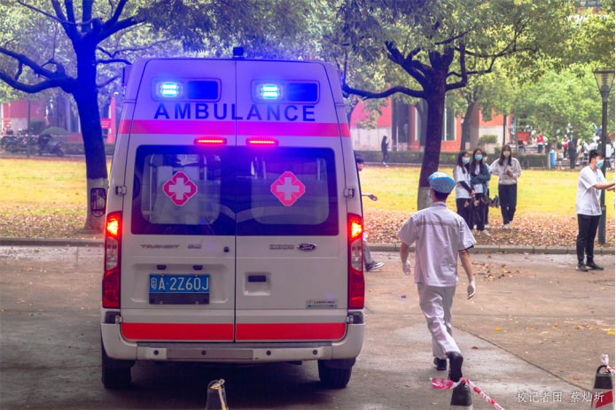在现场,就有一名考生身体突发不适,出现了呕吐、缺氧等情况。医护人员知道后迅速赶到考生身边,耐心询问考生的不适,对她的病况进行了及时的处理。待考生舒缓一些后,医护人员又安排救护车送她去医院检查身体,进行下一步治疗。同时,学校也安排相关工作人员陪同该考生到医院诊疗,直至学生家长到达医院。