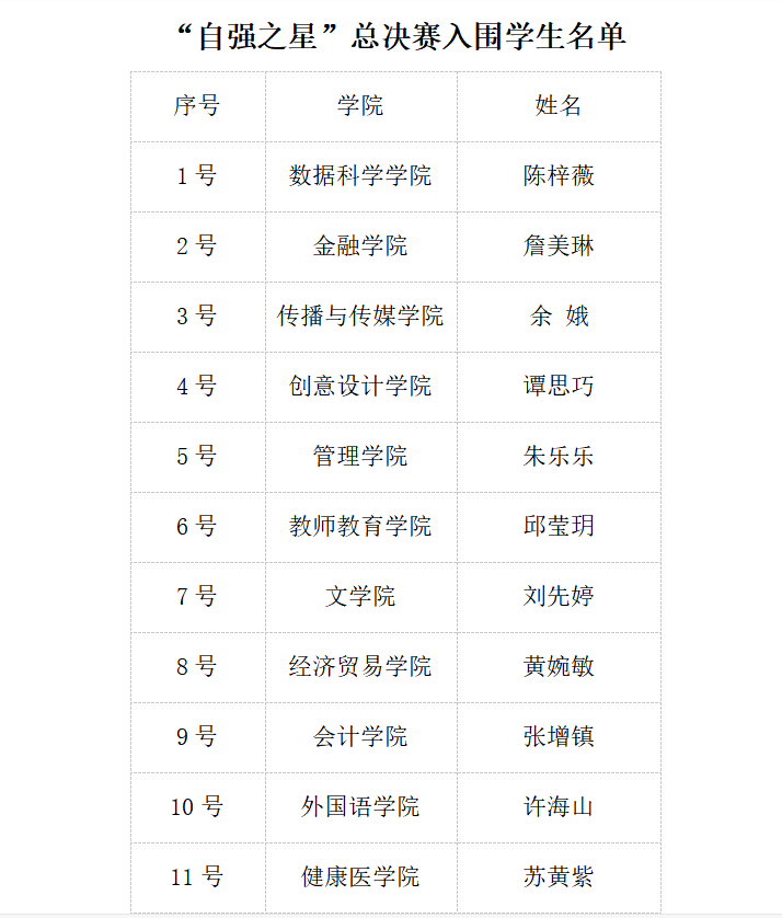 根据williamhill英国官网《华商学院“十大校园之星”评选办法》(华商院学201922)文件精神,及关于评选第二届“校园之星”的通知华商院学20231要求,经学院评选推荐、学生处复核,确定评结果。现将第二届学习之星、创业之星、科创之星、技能之星、公益之星、文明之星、文艺之星、体育之星、服务之星的评选名单进行公示。