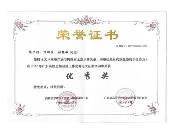 《网络诈骗与网络安全意识的关系:网络社交自我效能感的中介作用》