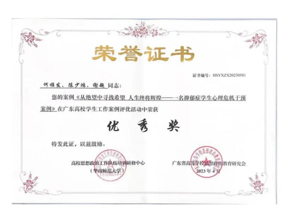 《从绝望中寻找希望 人生终将辉煌--一名抑郁症学生心理危机干预案例》