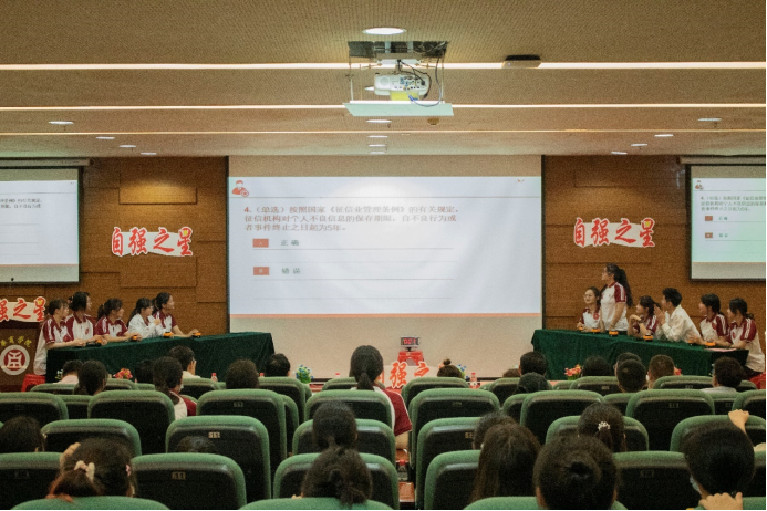 接下来是现场知识竞赛环节。选手们熟知国家和学校的资助政策,回答问题表现镇定,自信果断。