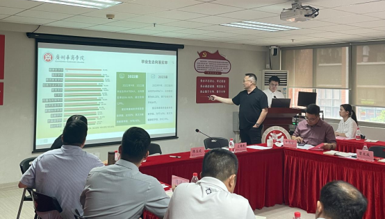 黄伟新校助对现阶段毕业生工作做动员讲话:一是着力帮扶群体就业,重点关注就业困难毕业生群体。二是加强就业跟踪服务,定期跟踪、实时反馈毕业生就业状态,提高就业信息数据的真实性和准确性。