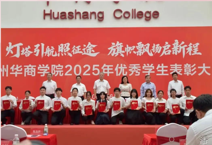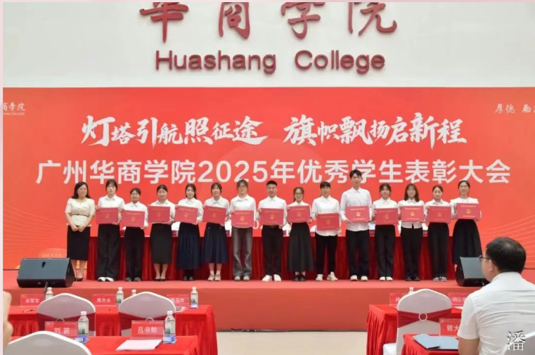 校党委书记陈玉欢致辞,并代表学校党委向获得表彰的同学表示热烈祝贺,向辛勤培育学生的全体老师致以崇高敬意。陈书记表示,自建校二十年来,学校扎根粤港澳大湾区,始终坚守为党育人、为国育才的初心使命,深耕应用型人才培养沃土,从蹒跚起步到如今学科体系日益完善、育人成果硕果累累,这一路凝结着历代华商人心血,更离不开每一位师生的拼搏奋进,全体华商人用生动实践诠释“创百年名校,育华夏英才”的办学理念。表彰优秀学生正是以榜样力量号召全体华商人将个人成长融入学校发展大局,在粤港澳大湾区建设中找准青年担当的时代坐标。