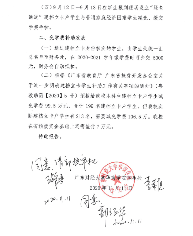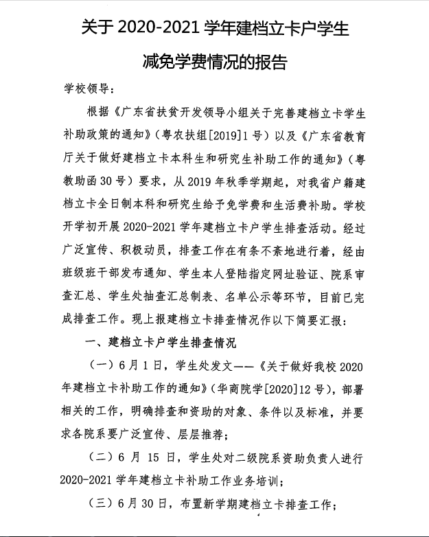关于2020-2021学年建档立卡户学生减免学费情况的报告