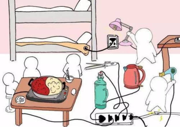 学校的宿舍是学生们待的时间最长的场所,许多同学都认为在宿舍使用一些电器会带来方便,然而这往往就是大多数校园事故发生的原因。