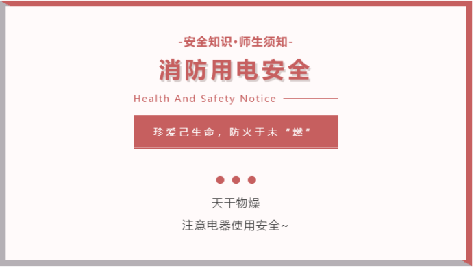 天气逐渐转凉,冬季悄然到来,电器火灾安全事件进入易发期、高发期。每一起火灾身亡事故的发生,都会给家庭带来巨大的精神伤害和无法弥补的损失。因此,为了确保生命安全,各位师生都一定要认真学习防火消防电器安全知识。