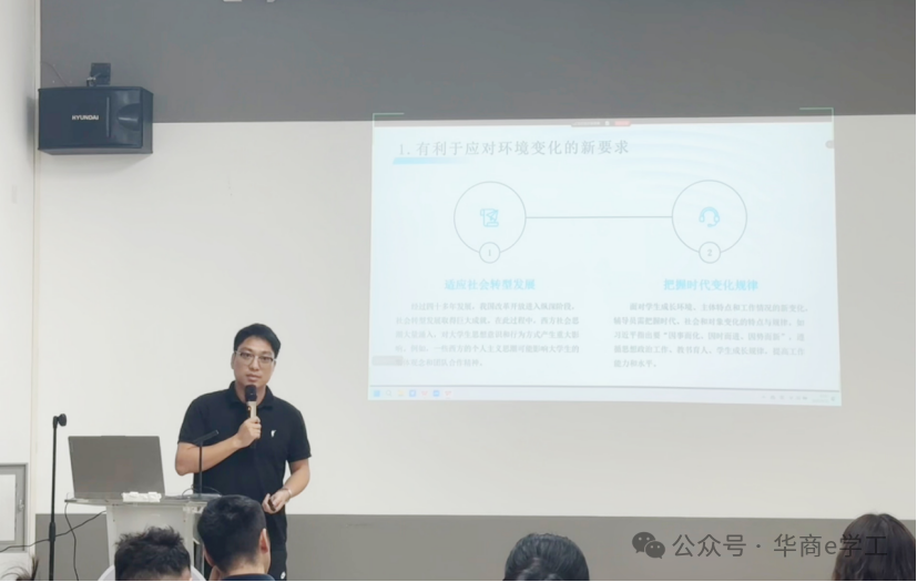 2025年5月21日,数字传播学院谢清明副主任分享心理健康与咨询工作经验,建议辅导员对有心理问题的学生秉持“多倾听、少评判”原则,通过多种方式全方位掌握学生心理动态,实现精准干预。随后,健康医学院杨李军主任结合学校实际,分析民办高校就业形势,指出学生面临的内外挑战并分享应对策略,助力学生明晰方向、稳步发展。