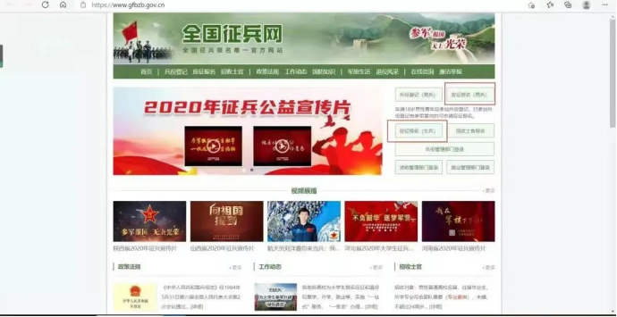 1.打开全国征兵网首页,点击“应征报名”