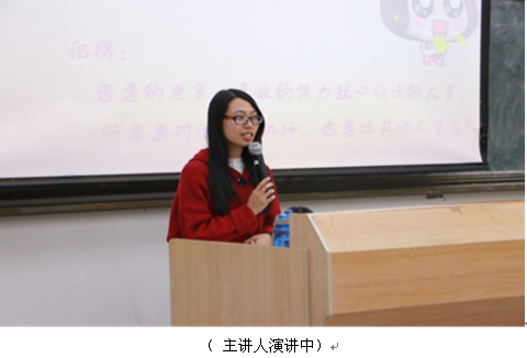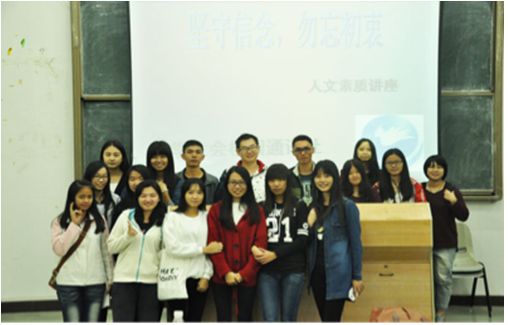11月26日下午6时30分,由广东财经大学华商学院学生处指导,院学生会校园通讯社主办的第六期人文素质讲座“坚守信念,勿忘初衷”在励志楼B栋407室举行。主讲人是荣获2014年度国家奖学金、来自会计学院12本会计学28班的区嘉裕。本次讲座同样吸引了众多的新老生抽空前来参加,现场气氛非常热烈,座无虚席。