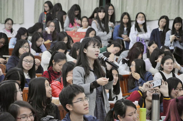 2016年3月29日星期二下午6点30分,由广东财经大学华商学院学生处指导,院学生会校园通讯社主办的第二期人文素质讲座在励志楼B栋407举行。主讲人是来自13本金融工程6班、2015—2016学年国家奖学金获得者卢毓旋。她演讲的主题是“心若向阳,遍地花开”,讲座现场气氛热烈,座无虚席。